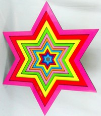 2 - RON AGAM 'STAR OF DAVID' 3D SCULPTOGRAPH Ron Agam three-dimensional sculptograph depicting a colorful Star of David. Hand signed and numbered 156/200. Measures 26 1/2" x 23" x 3".
