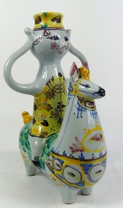 31 - BJORN WIINBLAD CERAMIC FIGURAL CANDLE HOLDER Bjorn Wiinblad Danish ceramic candlestick holder in the form of a woman on a horse. Signed and dated 1969 to underside. Measures 10 5/8" h x 7 3/4" l x 3 5/8" w.