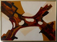 3 - CONRAD MARCA-RELLI OIL & COLLAGE ON CANVAS Oil painting and collage on canvas attributed to Conrad Marca-Relli (American, 1913-2000). Signed to verso. Viewable measures 47 7/8" x 35 5/8". Frame measures 49 3/4" x 37 1/2" x 1 1/2".