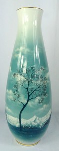40 - LARGE ROSENTHAL PORCELAIN LANDSCAPE VASE Rosenthal porcelain vase depicting a mountainous winter landscape with tree. Marked to underside. Measures 18" x 6 1/4" x 6 1/4".
