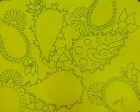 44 - PETER MAX PENCIL AND ACRYLIC ON PAPER Psychedelic pencil drawing on painted yellow paper in the style of Peter Max. Pencil signed lower right. Sheet measures 14" x 11".