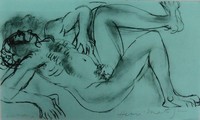 45 - HENRI MATISSE 'POLYPHEME' PENCIL SIGNED LITHOGRAPH Henri Matisse lithograph on blue paper depicting a reclining nude figure. Plate signed and titled lower left. Hand signed inpencil lower right. Sheet measures 8 1/4" x 5".