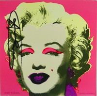 4 - ANDY WARHOL 'MARILYN' SIGNED ANNOUNCEMENT Andy Warhol (American, 1928-1987) offset lithograph in colors announcement for Andy Warhol: A Print Retrospective 1963-1981. Printed by Colour Editions, Inc. Published by Castelli Graphics. Signed in black marker along left edge. Measures 12"x 12"