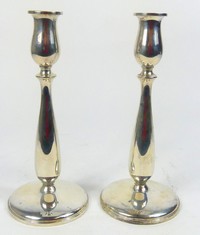 8 - PR CARTIER STERLING SILVER CANDLESTICK HOLDERS Pair of Cartier sterling silver candle holders. Each marked Cartier, Sterling, Weighted, 377. Each measures 9 1/8" x 4" x 4".