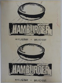 16 - ANDY WARHOL 'HAMBURGER' DOUBLE SCREENPRINT Andy Warhol screenprint on paper depicting a hamburger (double). Signed in red marker upper right. Sheet measures 31 1/4" x 23 1/2".
