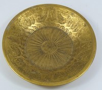 21 - LOUIS C TIFFANY FURNACES GILT BRONZE ENAMEL DISH Louis C. Tiffany Furnaces, Inc gilt bronze and enamel plate. Marked Louis C. Tiffany Furnaces, Inc, 304. Measures 11 7/8" diameter.