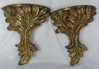 23 - PR SERGE ROCHE STYLE OVERSIZED WALL BRACKETS Pair of Serge Roche style gold Regency wall shelves / sconces. Each measures 21" h x 17" w.
