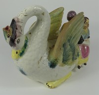 27 - ANTIQUE MAJOLICA CERAMIC SWAN PITCHER Antique Majolica ceramic pitcher in the form of a swan with two seated figures. Measures 11 1/2" x 9 1/2" h.