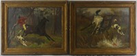 2 - PR ARTHUR WARDLE OIL PAINTINGS ON CANVAS Pair of oil paintings on canvas by Arthur Wardle (British, 1864-1949). Each depicts an equestrian scene with hound and rider falling from horse. Each signed lower right. Each measures 17 1/2" x 13 1/8 viewable. Each frame measures 22" x 17 1/2".