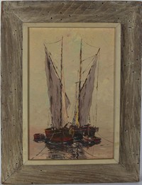 32 - RUDOLF CERMAK 'SAILBOATS' OIL PAINTING ON BOARD Rudolf Cermak (Czech, 1883-1947) oil painting on board depicting two sailboats. Signed lower left. Viewable measures 12 3/4" x 8 1/8". Frame measures 18 1/4" x 13 3/4".