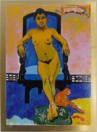33 - PAUL GAUGUIN 'ANNA & THE MONKEY TAOA' SERIGRAPH Paul Gauguin serigraph on .9999 pure gold laminate. Signed in the plate lower right. Marked H.C. and holds Studio Perna blindstamp lower left. Includes Certificate of Authenticity and additional documentation. Serigraph measures 10 5/8" x 7 5/8".