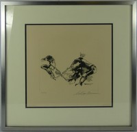 34 - LEROY NEIMAN 'GOAL' HOCKEY SUITE ETCHING LeRoy Neiman etching from the Hockey suite. Titled 'Goal, 1972'. Pencil signed lower right. Numbered 75/150 lower left. Plate measures 8 1/4" x 7 3/8". Frame measures 18 3/4" x 18 3/4".