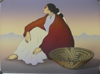 35 - R.C. GORMAN 'WOMAN WITH PIMA BASKET' LITHOGRAPH R.C. Gorman (American, 1932-2005) color lithograph titled 'Woman with Pima Basket, 1987. Signed in pencil and dated 1987 lower left. Numbered 90/200 lower right. Sheet measures 38" x 27 3/4".
