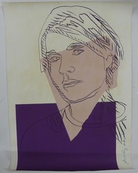 37 - ANDY WARHOL 'SELF PORTRAIT' SIGNED LITHOGRAPH Andy Warhol 'Self-Portrait' color lithograph. Signed in blue marker lower right. Sheet measures 41 1/2" x 29 1/2".