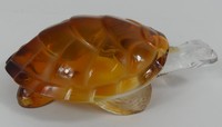 4 - LALIQUE AMBER CRYSTAL TURTLE Lalique amber crystal turtle. Marked to underside. Measures 5 1/2" length.