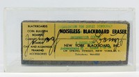 11 - JOSEPH BEUYS NOISELESS BLACKBOARD ERASER Joseph Beuys (German, 1921-1986) noiseless blackboard eraser. Hand signed and numbered 331/550. Published by Ronald Feldman Fine Arts, New York. Eraser measures 5" x 2" x 7/8". Display case measures 6" x 2 7/8" x 2 7/8".