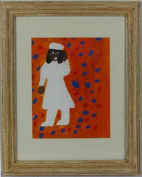 17 - SISTER GERTRUDE MORGAN 'SELF PORTRAIT' MIXED MEDIA Acrylic and watercolor painting on painting depicting a self portrait attributed to Sister Gertrude Morgan (American, 1900-1980). Hand signed in pencil center right. Viewable measures 9 1/2" x 7 1/2". Frame measures 16 3/8" x 13 3/8".