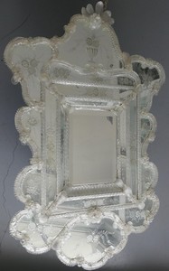 22 - VENETIAN GLASS MIRROR Venetian mirror with applied and etched glass. Measures 49 1/2" x 33".
