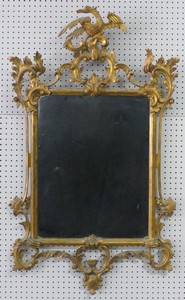 24 - ITALIAN GILT WOOD PHOENIX MIRROR Italian carved gilt-wood mirror with phoenix. Measures 53" x 31". Note: multiple repairs.