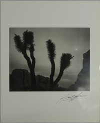 33 - ANSEL ADAMS 'MOONRISE OVER JOSHUA TREE' SIGNED Ansel Adams 'Moonrise, Joshua Tree National Monument, California photo lithograph. Hand signed lower right. Mounted. Sheet measures 14 1/4" x 11 5/8".