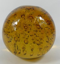 39 - LARGE MURANO STYLE BULLICANTE GLASS SPHERE Large Murano style amber art glass sphere with controlled bubble design. Measures 7" diameter.