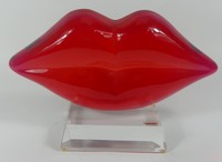 45 - SHLOMI HAZIZA 'LIPS' ACRYLIC SCULPTURE Shlomi Haziza 'Lips' lucite sculpture. Signed to side of base and holds original label to top of base. Measures 16" x 9 1/2".