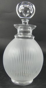 46 - LALIQUE 'LANGEAIS' FROSTED CRYSTAL DECANTER Lalique 'Langeais' frosted crystal decanter having a ribbed body. Colorless stopper. Marked to underside. Measures 10" height.