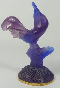 47 - DAUM PATE DE VERRE ART GLASS ROOSTER Daum Pate de Verre art glass rooster. Gilt base. Signed to underside. Measures 6 1/4" height.