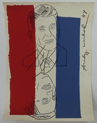 5 - ANDY WARHOL 'ELECTION NIGHT 1984' INVITATION Andy Warhol color offset lithograph depicting Ronald Reagan and Walter Mondale. Signed and dated 1984 in the plate. Sheet measures 12 1/8" x 9 1/4".