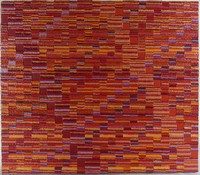 9 - DEE SHAPIRO 'CHROMATISM #3' ACRYLIC ON CANVAS Dee Shapiro (American, b.1936) acrylic on canvas. Titled 'Chromatism Series #3.' Signed, titled and dated 1978 to verso. Holds Andre Zarre Gallery label. Measures 26 1/8" x 24 1/8".