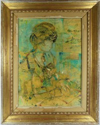 16 - LAZZARO DONATI OIL PAINTING ON BOARD Lazzaro Donati (Italian, 1926-1977) oil painting on canvas depicting a seated female. Signed, dated and titled 'Fanciulla Che Legge In Celeste' to verso. Viewable measures 27 1/4" x 19 1/2". Frame measures 37" x 29".