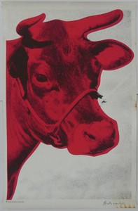 22 - ANDY WARHOL 'COW' RED ON WHITE LITHOGRAPH Andy Warhol color lithograph depicting a red cow on white ground. Hand signed in black marker lower right margin. Marked Andy Warhol La Biennale 1976 copyright lower left. Sheet measures 45 3/4" x 29 1/4".