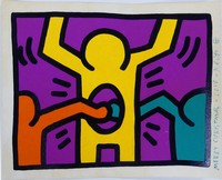 23 - KEITH HARING 'POP SHOP I' COLOR SCREENPRINT Keith Haring color screenprint titled 'Pop Shop I'. Marked in blue crayon 'Merry Christmas - Love - Keith' to right margin. Sheet measures 15" x 12".