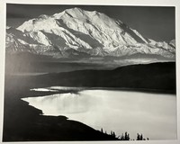 26 - MOUNT MCKINLEY AND WONDER LAKE' PHOTO-LITHO Ansel Adams (American, 1902-1984) 'Mount Mckliney and Wonder Lake' photo-litho. Mounted. Measures 11 1/2 x 14 1/2 inches.