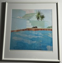 32 - DAVID HOCKNEY SWIMMING POOL SIGNED POSTER David Hockney (British, b. 1937) 'Swimming Pool' poster. Signed lower right in pencil. Frame measures 31 x 28 inches.
