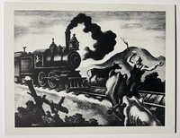 34 - THOMAS HART BENTON 'WRECK OF THE OL’ 97' LITHO Thomas Hart Benton (American, 1889-1975) 'Wreck of the Ol’ 97' offset lithograph. Mounted. Measures 8 1/2 x 11 1/2 inches.