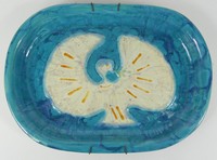 3 - MARCEL JANCO 'DOVE' CERAMIC TRAY Marcel Janco (Israeli/Romanian, 1895-1984) hand painted glazed ceramic tray depicting a dove with olive branch. Signed to underside. Measures 14 1/4" x 10 1/4".