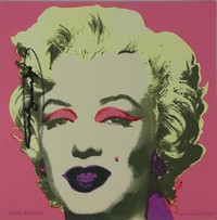 7 - ANDY WARHOL 'MARILYN' SIGNED ANNOUNCEMENT Andy Warhol (American, 1928-1987) offset lithograph in colors announcement for Andy Warhol: A Print Retrospective 1963-1981. Printed by Colour Editions, Inc. Published by Castelli Graphics. Signed in black marker along left edge. Measures 12"x 12"