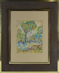 24 - LOUIS VALTAT LANDSCAPE WATERCOLOR ON PAPER Watercolor on paper depicting a landscape attributed to Louis Valtat (French, 1869-1952). Signed lower right. Viewable measures 10 1/4" x 8 1/8". Frame measures 23" x 19" x 1 1/2".