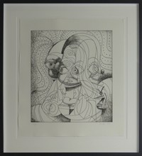 2 - GEORGE CONDO 'THE INSANE CLOWN' ETCHING George Condo 'The Insane Clown' etching with drypoint on wove paper. Pencil signed, dated and holds Burnet Editions blindstamp lower right. Numbered 29/30 and holds blindstamp lower left. Sheet measures 22 1/2" x 20". Frame measures 29 1/2" x 27:.
