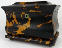 31 - ANTIQUE TORTOISESHELL TEA CADDY Antique tortoise shell tea caddy having two covered compartments. Measures 7 1/4" x 4 5/8" x 5 1/2" h.