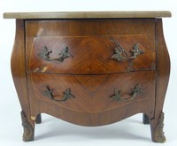 37 - FRECH MINIATURE MARBLE TOP COMMODE French miniature marble top commode. Measures 11" x 6" x 9 1/4" h.