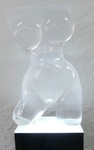 42 - MORTON MEVORACH 'NUDE TORSO' ACRYLIC SCULPTURE Morton Mevorach lucite sculpture depicting a nude female torso. Signed to figure's left leg. Includes lighted pedestal and artist brochure. Sculpture measures 26" x 16" x 4". Pedestal measures 32 1/4" x 14" x 10".