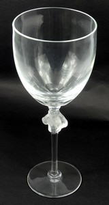 47 - LALIQUE 'ROXANE' OVERSIZED CRYSTAL WINE GOBLET Lalique 'Roxane' French crystal vase or oversized wine glass. Can hold an entire 750ml bottle of wine. Signed to underside. Measures 15 1/4" x 6" x 6".