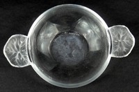 50 - LALIQUE FROSTED CRYSTAL GERANIUM LEAF BOWL Lalique crystal bowl with frosted geranium leaf handles. Signed to underside. Measures 6" x 3 3/4" x 1 1/8".