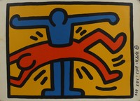 8 - KEITH HARING 'POP SHOP VI, PLATE I' SCREENPRINT Keith Haring 'Pop Shop VI, Plate I' screenprint. Signed in black marker and dedicated to Eric to right margin. Holds iguana blindstamp lower left. Sheet measures 16 1/2" x 13 1/4".